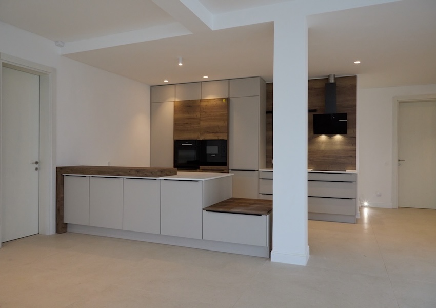 ● Svijetla dnevna soba sa panoramskim staklom, u kombinaciji sa kuhinjom i trpezarijom — srce doma za okupljanja i opuštanje.